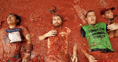 During La Tomatina people just come at you and tear the shirt right off you, even if you’re a woman so don’t act all surprised or scared. The whole tomato battle lasts for an hour aftewhich everyone goes to Bunol River to wash up. If any stragglers are still on the streets after the fight, the locals are more than happy to hose them down.